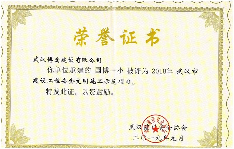 武漢市建設(shè)工程安全文明施工示范項目(國博一?。?/span>