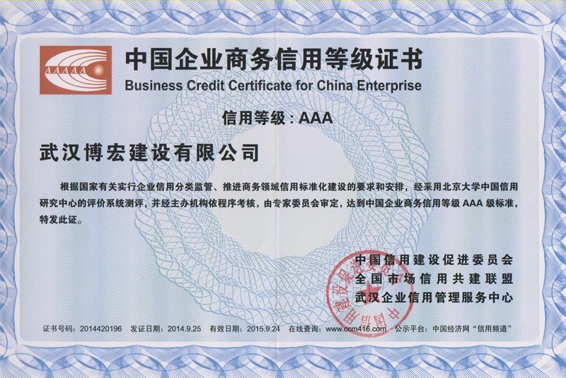 武漢地區(qū)建筑業(yè)企業(yè)信用等級證書