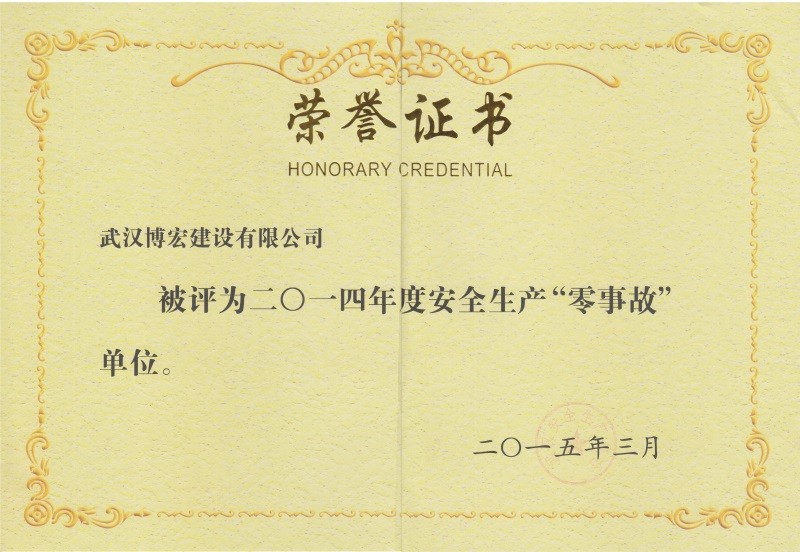 2014年度武漢地區(qū)市政行政企業(yè)信譽(yù)等級證書