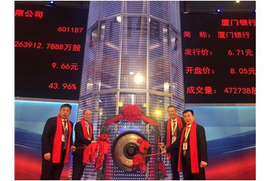 10月27日,大洲集團(tuán)參股企業(yè)——廈門銀行股份有限公司(股票代碼:601187)在上海證券交易所掛牌上市!集團(tuán)董事長陳鐵銘先生應(yīng)邀蒞臨現(xiàn)場與眾股東代表一同敲響上市鑼音!