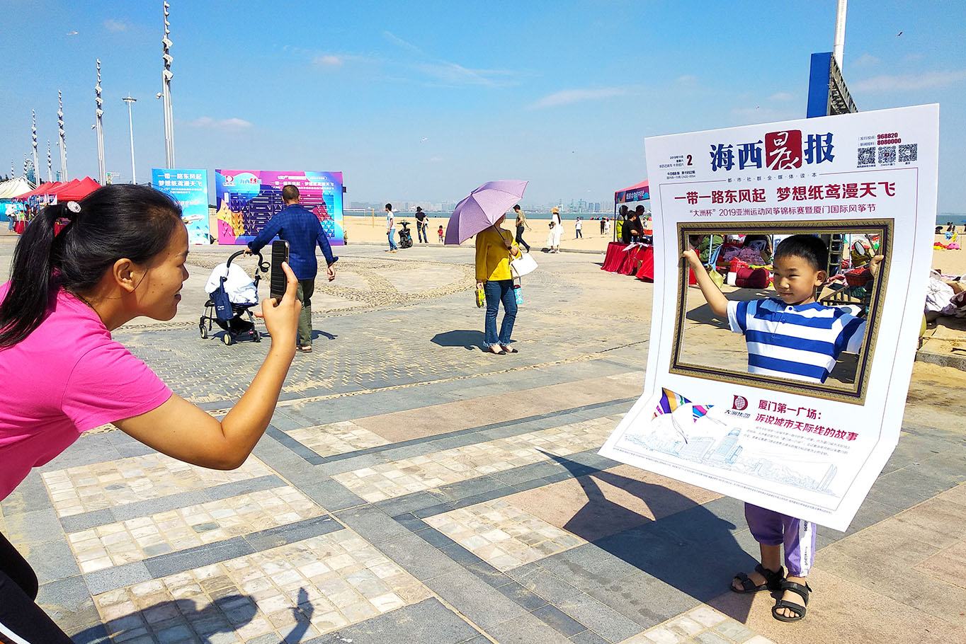 在風(fēng)箏節(jié)現(xiàn)場,大洲集團(tuán)與海西晨報共同準(zhǔn)備了拍照神器———“城市天際線”主題取景框,吸引了許多市民在風(fēng)箏節(jié)現(xiàn)場留下與天際線的最美合影。