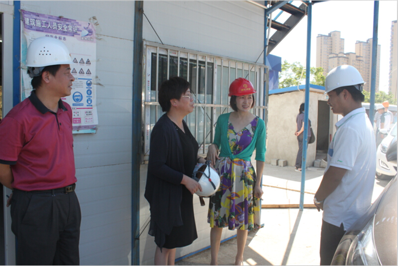 在現(xiàn)場(chǎng),博宏建設(shè)黨支部書(shū)記周紅向喻主席、謝主任詳細(xì)介紹了芳草小學(xué)建設(shè)基本情況和職工工作生活情況,了解到施工單位為避開(kāi)中午最高溫時(shí)段,對(duì)作息時(shí)間進(jìn)行了適當(dāng)調(diào)整,中午時(shí)間不安排建設(shè)者在室外作業(yè),對(duì)此喻主席表示贊許。她還向工地負(fù)責(zé)人建議,當(dāng)前天氣炎熱,在外作業(yè)一定要?jiǎng)谝萁Y(jié)合、防止中暑。