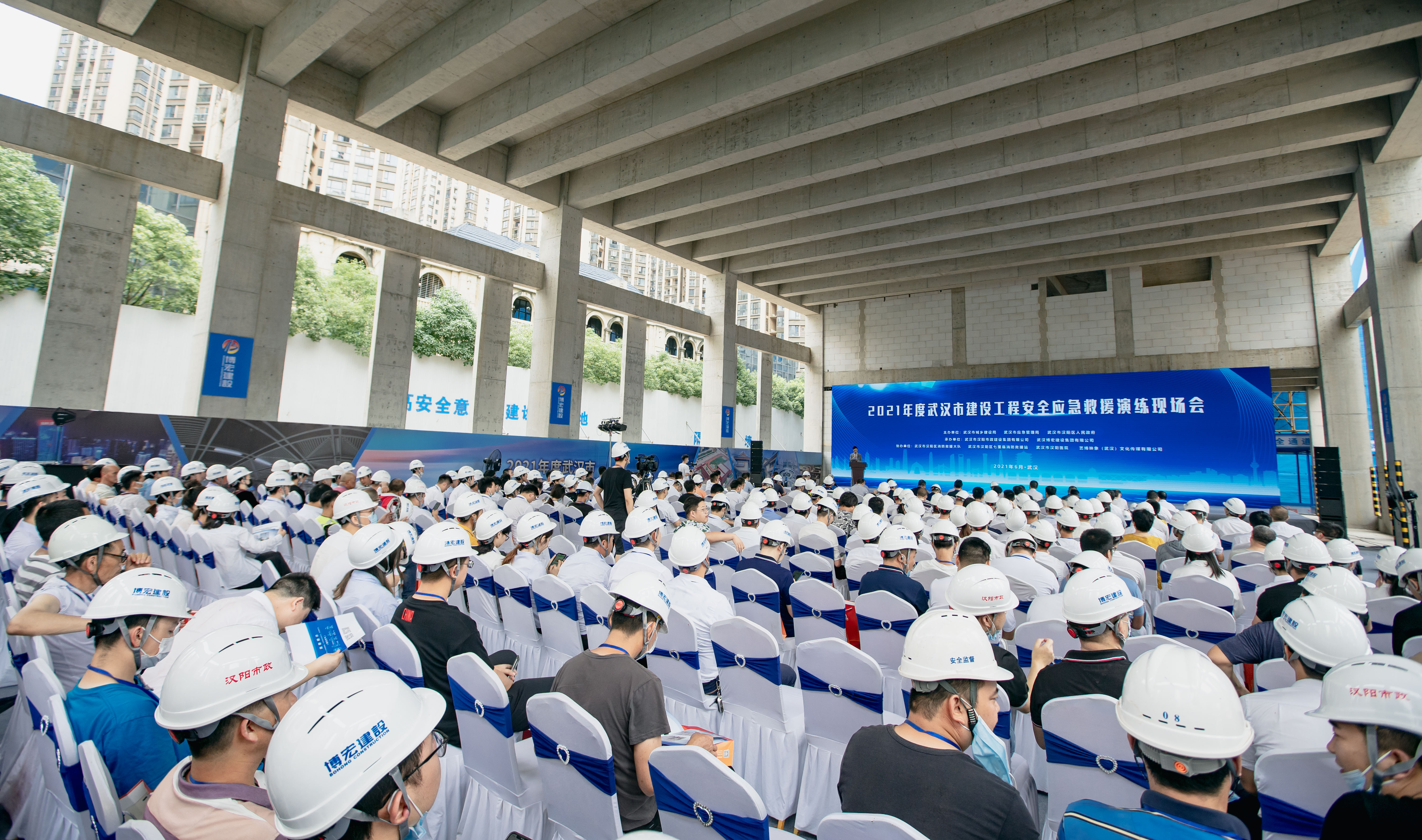 以全國第20個“安全生產(chǎn)月”為契機(jī),“2021年度武漢市建設(shè)工程安全應(yīng)急救援演練現(xiàn)場會”活動在漢陽市政博宏公司漢陽市政建設(shè)大廈項目現(xiàn)場順利舉行。武漢市城鄉(xiāng)建設(shè)局副局長榮先國、武漢市應(yīng)急管理局副局長喻思源、武漢市漢陽區(qū)副區(qū)長蔡松、湖北省質(zhì)安總站副站長周偉、武漢市安全站站長楊劼、武漢建筑業(yè)協(xié)會秘書長李祥林、漢陽區(qū)建設(shè)局局長胡紅勝、漢陽區(qū)應(yīng)急管理局局長李漢光、各區(qū)建設(shè)局、相關(guān)建設(shè)單位及同行施工單位共計400余人參加本次活動?;顒佑蓾h陽市政集團(tuán)公司、漢陽市政博宏公司共同承辦。