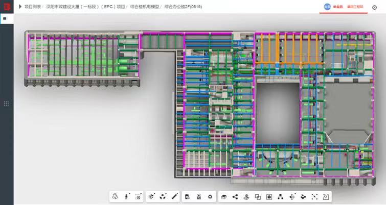 研究生期間彭迎研究的方向是BIM技術(shù)土建方向,但工作需要盡快上手的是BIM技術(shù)機(jī)電方向,一時(shí)讓她有點(diǎn)手足無措,“有問題先嘗試解決,辦法總比困難多”踏實(shí)肯干的她選擇了迎難而上,白天她跟著師傅們不厭其煩地穿梭于現(xiàn)場(chǎng)的各個(gè)樓棟,在工作過程中多看、多問、多記、多學(xué),晚上回到宿舍,她通過閱讀大量BIM機(jī)電方向相關(guān)書籍以及上網(wǎng)課等方式自學(xué)相關(guān)知識(shí),有時(shí)為了弄懂一個(gè)問題常常奮戰(zhàn)到深夜。從入門到逐漸架構(gòu)起整個(gè)知識(shí)體系,彭迎經(jīng)歷了半年的時(shí)間。在自學(xué)期間,她遇到了很多困難和瓶頸,但因?yàn)闊釔郏瑥奈聪脒^放棄。“那段時(shí)間很累但是也很充實(shí),每天都能學(xué)習(xí)到新的東西,讓我對(duì)機(jī)電的了解越來越深入,也越發(fā)體會(huì)到了BIM的魅力??粗约豪L制的BIM圖紙粘貼在了施工墻上,工人按照?qǐng)D紙可以搭建出符合標(biāo)準(zhǔn)的砌體,心中的喜悅是無法用語言描述的。”回憶起那段時(shí)光時(shí),她臉上總是帶著微笑。理論上的認(rèn)真鉆研,現(xiàn)場(chǎng)中的建模實(shí)踐,彭迎的專業(yè)技術(shù)在不懈努力中愈見純熟,在負(fù)責(zé)總部大樓地上部分機(jī)電BIM工作過程中考取了BIM二級(jí)設(shè)備證,也和同事們一起獲得了多項(xiàng)國家級(jí)、省市級(jí)BIM獎(jiǎng)項(xiàng),熱愛與進(jìn)取讓她一次次品嘗到了成功的碩果。