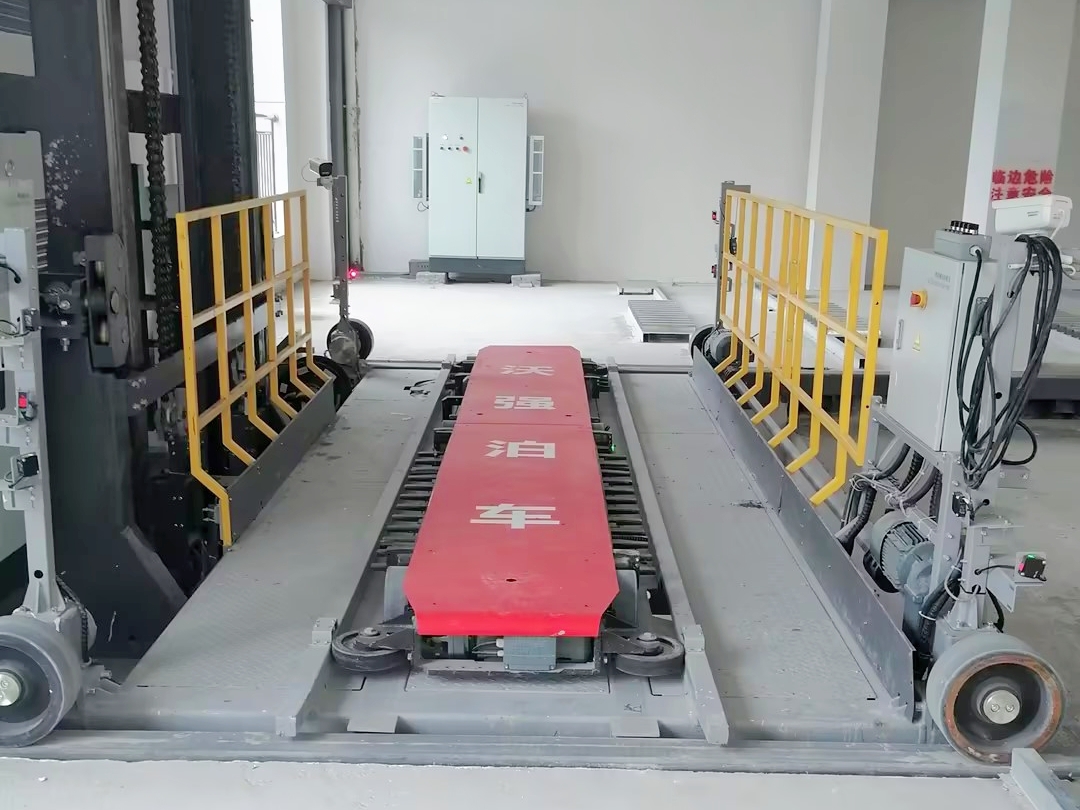 惠民苑社區(qū)服務(wù)中心改造工程EPC項(xiàng)目配備有地上6層的平面移動型車庫,共有127個車位,由轉(zhuǎn)盤、端部升降機(jī)、橫移臺車和梳齒搬運(yùn)器等設(shè)備組成完整的停車系統(tǒng)。轉(zhuǎn)盤設(shè)置在出入口車廳內(nèi),可實(shí)現(xiàn)汽車的轉(zhuǎn)向功能;端部升降機(jī)設(shè)置在車庫內(nèi)部巷道的側(cè)邊,可實(shí)現(xiàn)車輛的豎直提升功能;橫移臺車設(shè)置在升降機(jī)內(nèi),可實(shí)現(xiàn)車輛的橫向搬運(yùn)功能;梳齒搬運(yùn)器設(shè)置在橫移臺車內(nèi),采用電機(jī)驅(qū)動行走輪實(shí)現(xiàn)汽車縱移運(yùn)動,具有運(yùn)行平穩(wěn)、承載能力強(qiáng)的特點(diǎn);車庫總控制設(shè)備設(shè)置在一層監(jiān)控室內(nèi),用于所有停車機(jī)電設(shè)備的控制和調(diào)度。