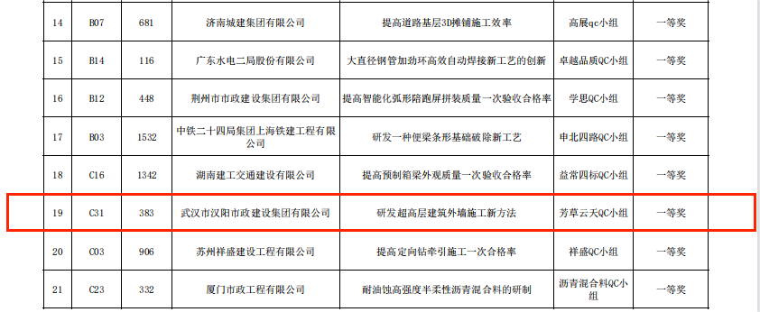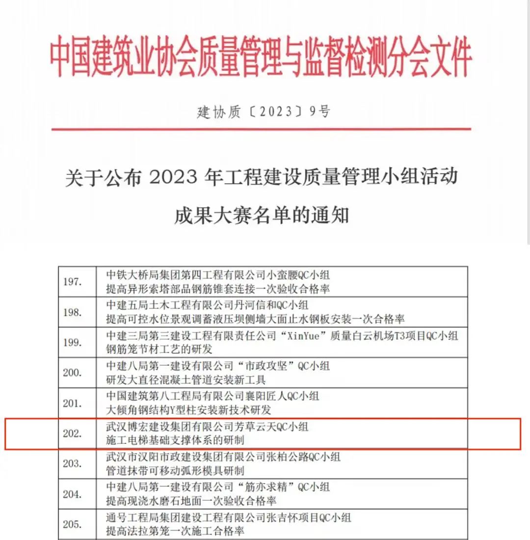 近日,中國建筑業(yè)協(xié)會、中國施工企業(yè)管理協(xié)會與中國市政工程協(xié)會工程建設質量管理小組活動成果大賽獲獎名單陸續(xù)出爐,基于中南科研設計中心建設項目現(xiàn)場情況總結出的《施工電梯基礎支撐體系的研制》、《提高鋼結構對接焊縫驗收合格率》與《研發(fā)超高層建筑外墻施工新方法》3項QC成果榮獲國家級獎項。