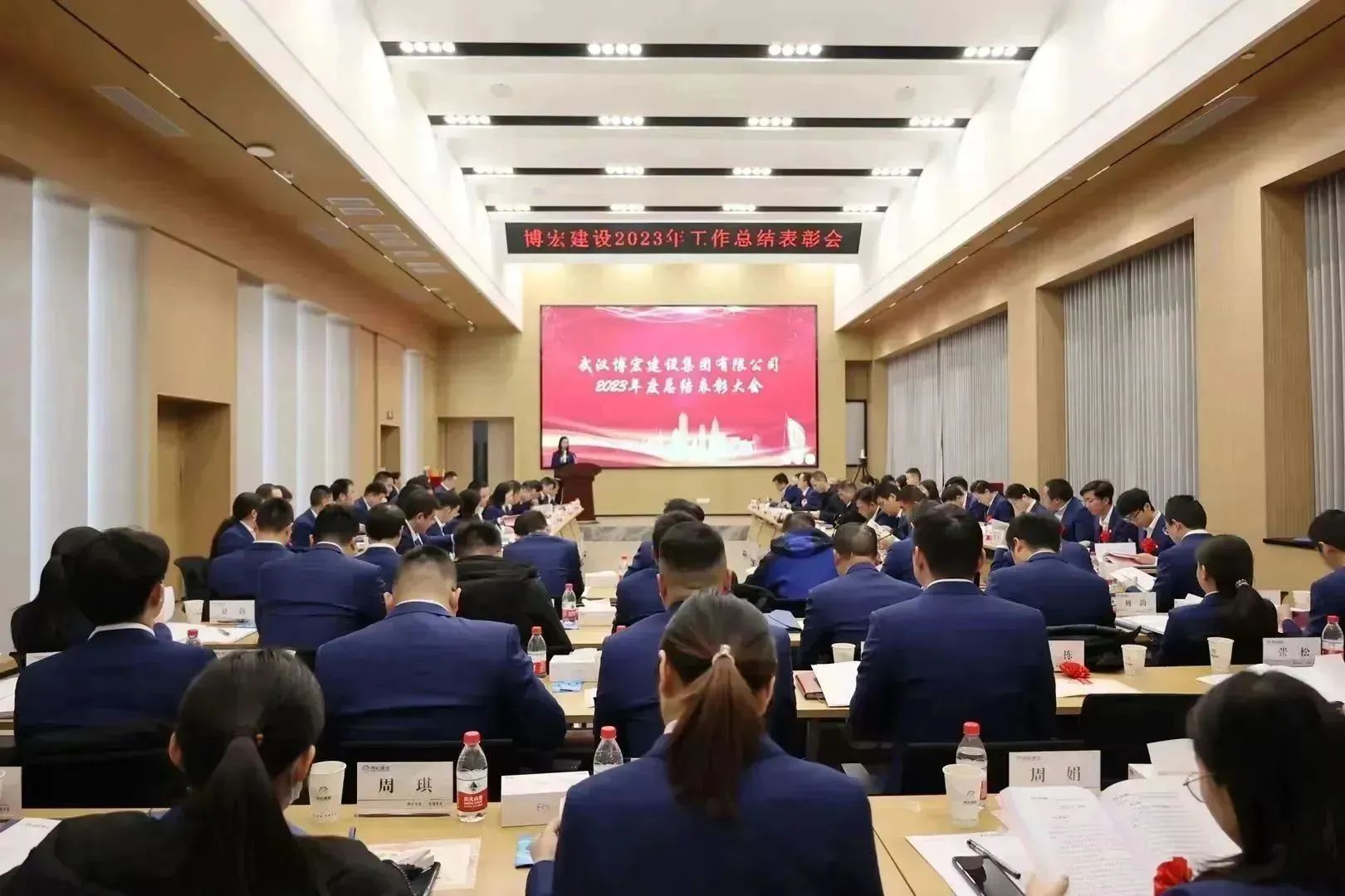 1月26日-27日,博宏建設(shè)2023年工作總結(jié)暨2024年工作研討會在公司31樓會議室隆重召開。公司黨委班子、部門負(fù)責(zé)人、項目經(jīng)理和員工代表共84人參加會議。漢陽市政黨委書記、董事長嚴(yán)悌文受邀出席會議。會議由公司黨委副書記郭一清主持。