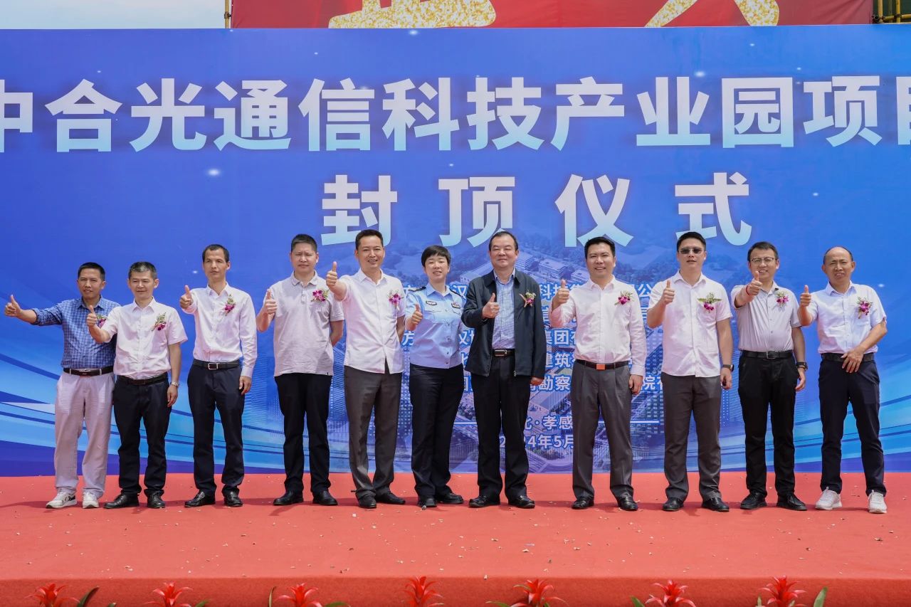 2024年5月9日上午,中合光通信科技產(chǎn)業(yè)園(一期)封頂儀式在項(xiàng)目現(xiàn)場隆重舉行。孝感市人大常委會副主任、臨空區(qū)工委書記邱顯春,孝感市臨空區(qū)工委委員、公安分局局長劉洋,武漢塔子湖集團(tuán)有限公司黨委書記葉永斌、董事長胡浩,武漢博宏建設(shè)集團(tuán)有限公司董事長鄒勇,武漢中合智能科技集團(tuán)有限公司董事長李劍出席封頂儀式,共同見證項(xiàng)目封頂。湖北交投耀棟建筑有限公司等參建單位相關(guān)領(lǐng)導(dǎo)參加本次儀式。