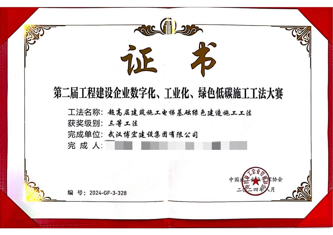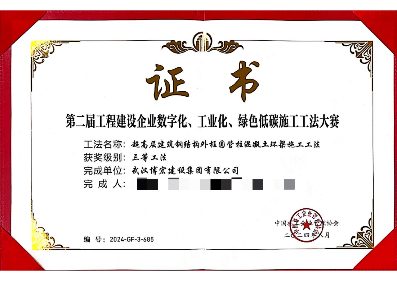 近日,中國施工企業(yè)管理協(xié)會公布第二屆工程建設(shè)企業(yè)數(shù)字化、工業(yè)化、綠色低碳施工工法大賽、第四屆工程建造微創(chuàng)新技術(shù)大賽結(jié)果,博宏建設(shè)集團(tuán)喜獲2項(xiàng)三等工法、1項(xiàng)優(yōu)勝成果。